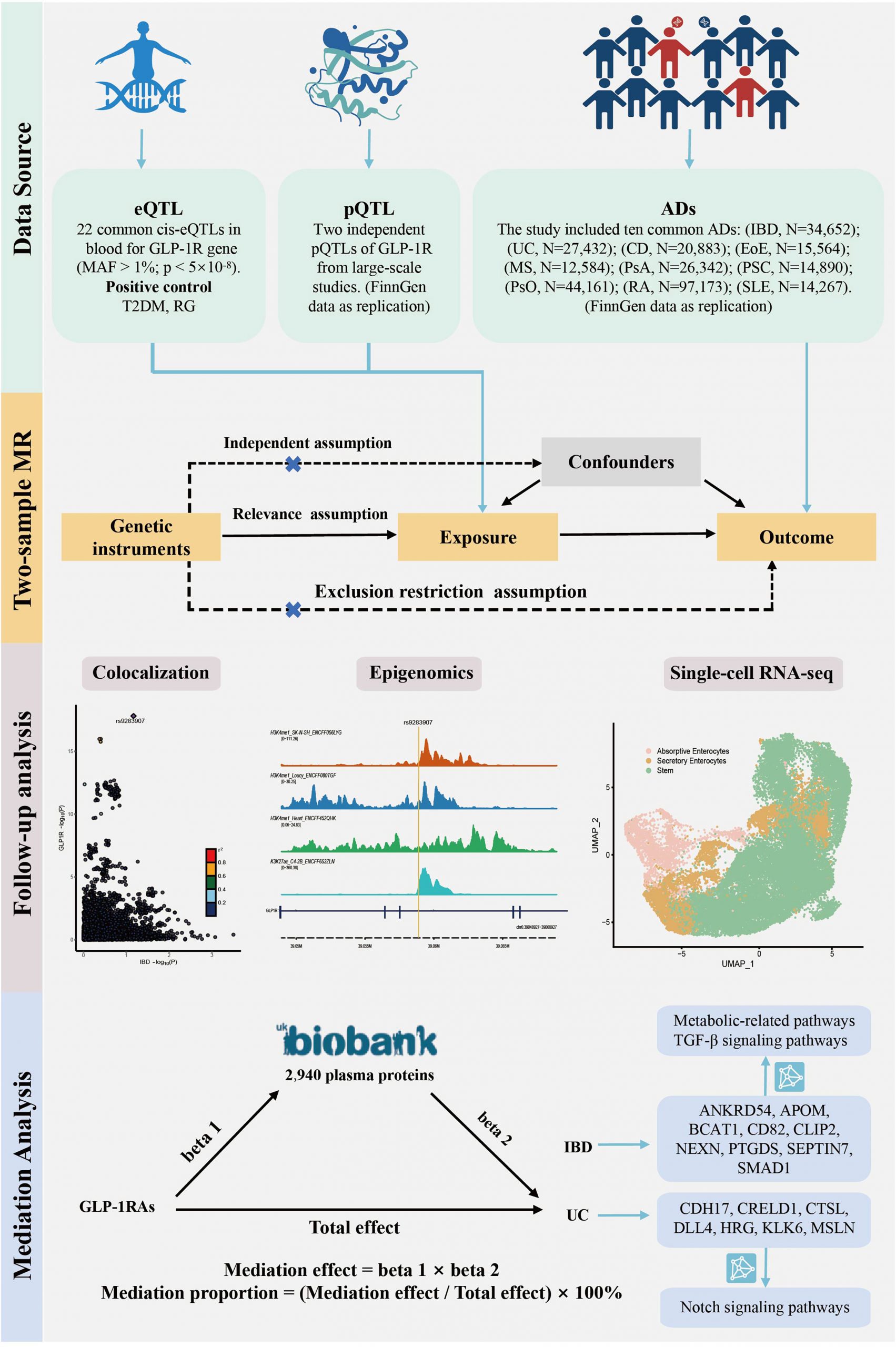 Glucagon-like peptide-1 receptor agonists (GLP-1RAs) have become a cornerstone in the treatment of type 2 diabetes, widely prescribed for their ability to improve glycaemic control and support weight loss. But as their use expands, so does interest in their broader immunological effects. A new study takes a deep dive into this question, uncovering genetic evidence that these therapies may influence susceptibility to certain autoimmune diseases, particularly those affecting the gut (Figure 1).