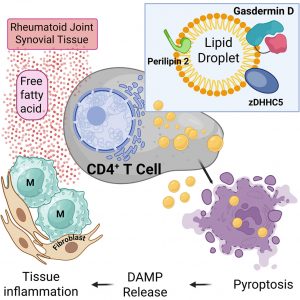 Importantly, this lipid-induced pyroptosis occurred in CD4+ T cells from RA patients but not in cells from healthy controls, suggesting that autoimmune T cells are uniquely vulnerable to metabolic stress.