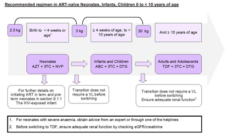 Figure 1 Recommended regimen in ART naive Neonates, Infants, Children 0 to <10 years of age. (Standard Treatment Guidelines and Essential Medicines List for South Africa, 2023)